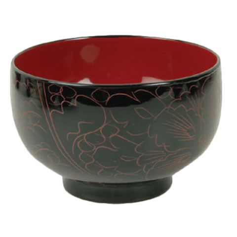 Soup/Rice Bowl, 9 oz., 4" x 2-1/2", decorative exterior, wood carved with clear finish