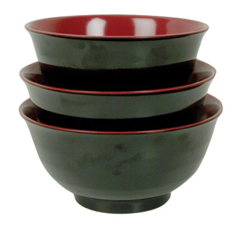 Donburi/Soba Soup Bowl, 24 oz., 6-1/8" dia., round, two-tone, break-resistant, dishwasher safe, two-tone, melamine, red/black, BPA free, NSF