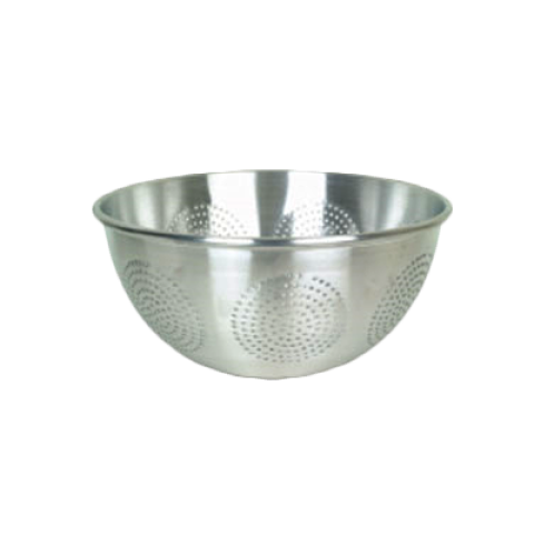 Colander, 12 quart capacity, rolled edge, perforated, no handles, aluminum