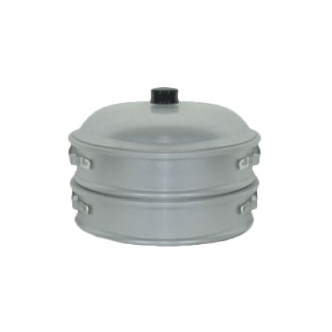 Steamer Set, 22" dia. x 21"H, without bottom, handles built in all sides of compartments, includes: 2 perforated stacks & 1 cover, aluminum