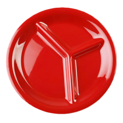 Compartment Plate, 10-1/4" dia., round, 3-wells, break-resistant, dishwasher safe, BPA free, melamine, pure red, NSF