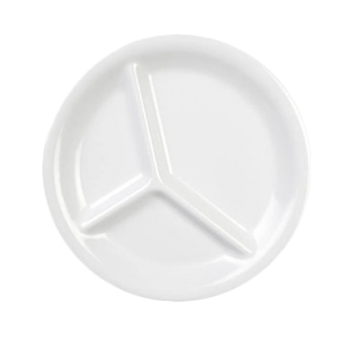 Compartment Plate, 10-1/4" dia., round, 3-wells, break-resistant, dishwasher safe, BPA free, melamine, white, NSF