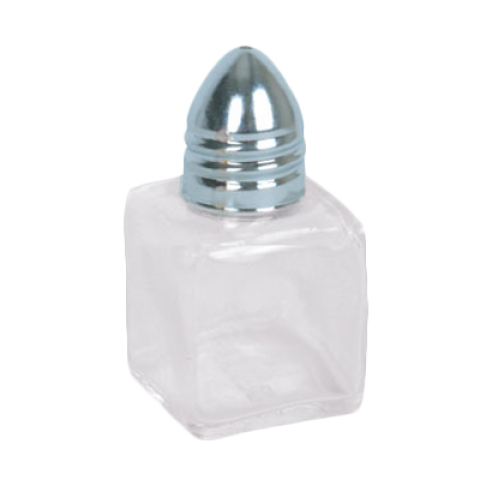 Salt/Pepper Shaker, 1/2 oz. capacity, glass cube base, stainless steel bullet cap, dishwasher safe (4 dozen minimum order)