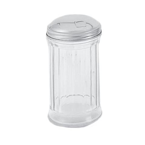 Sugar Pourer, 12 oz. capacity, paneled glass, flip cap, dishwasher safe, stainless steel (2 dozen minimum order)