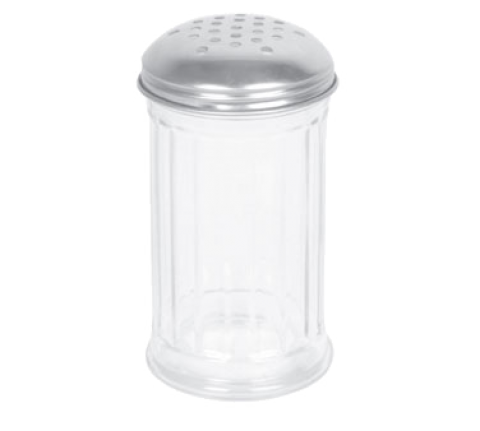 Cheese Shaker, 12 oz. capacity, paneled glass, perforated cap, dishwasher safe, stainless steel (2 dozen minimum order)