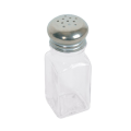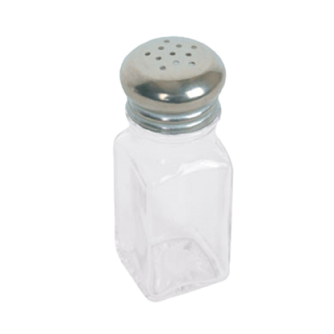 Salt/Pepper Shaker, 2 oz. capacity, square glass base, dishwasher safe, stainless steel mushroom cap (2 dozen minimum order)