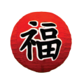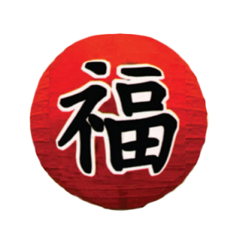 Japanese Cochin Lantern, 16" dia., round, "Fortune", paper, red (12 each minimum order)