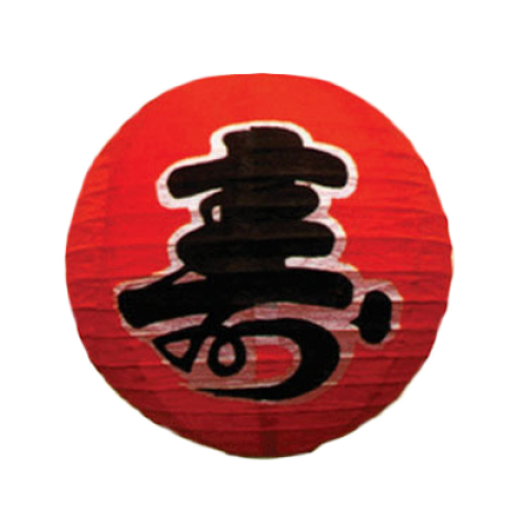 Japanese Cochin Lantern, 16" dia., round, "Longevity", paper, red (12 each minimum order)