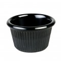 Ramekin, 1-1/2 oz. capacity, 2-1/2" dia., round, fluted, break-resistant, dishwasher safe, BPA free, melamine, black, NSF