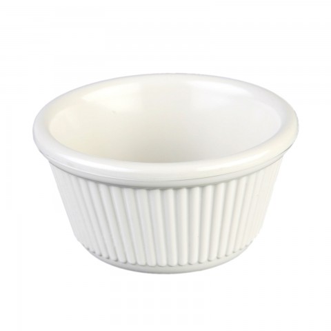 Ramekin, 4 oz. capacity, 3-3/8" dia., round, fluted, break-resistant, dishwasher safe, BPA free, melamine, bone, NSF
