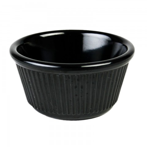Ramekin, 4 oz. capacity, 3-3/8" dia., round, fluted, break-resistant, dishwasher safe, BPA free, melamine, black, NSF