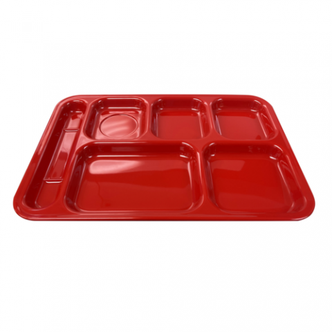 Tray, 14-1/2"W x 10"D x 1-1/8"H, left hand (6) compartment, pure red, Melamine, NSF