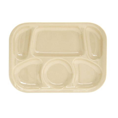 Compartment Tray, 13" x 9-1/2", 6 compartments, break-resistant, dishwasher safe, melamine, tan, BPA free, NSF