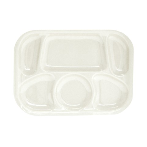 Compartment Tray, 13" x 9-1/2", 6 compartments, break-resistant, dishwasher safe, melamine, white, BPA free, NSF