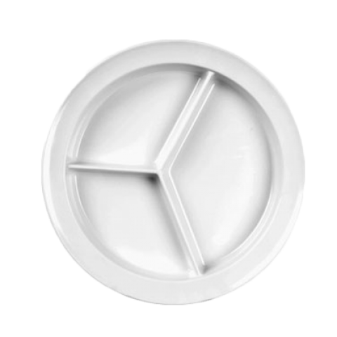 Compartment Plate, 8-3/4" dia., round, 3-deep wells, break-resistant, dishwasher safe, BPA free, melamine, NuStone White, NSF
