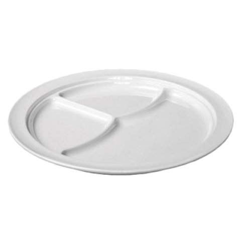 Compartment Plate, 10-1/4" dia., round, 3-wells, break-resistant, dishwasher safe, BPA free, melamine, NuStone White, NSF