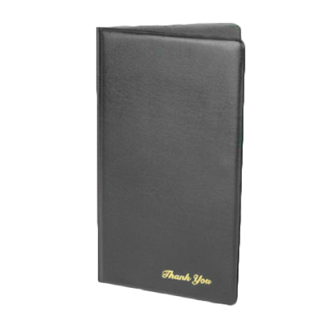 Check Presentation Holder, 5-3/4" x 9-1/2", double panel, pocket inserts, gold imprinted "Thank You" on front cover, black (10 each minimum order)