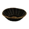 Basket, 8" x 8" x 2-1/4", round, woven, break-resistant, stackable, plastic, black with gold trim (12 each minimum order)