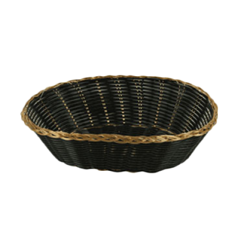 Basket, 9 x 6-7/8" x 2-1/4", oval, woven, break-resistant, stackable, plastic, black with gold trim (12 each minimum order)