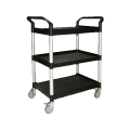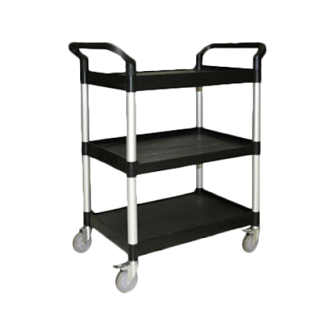 Bus Cart, 40-1/2" x 19-3/4" x 37-7/8", 176 lb. load capacity, 3-tier shelving, open design, 2 handles, 4 swivel casters: 2 with brakes, plastic, black, KD