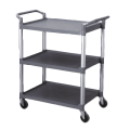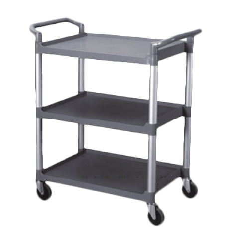 Bus Cart, 40-1/2" x 19-3/4" x 37-7/8", 176 lb. load capacity, 3-tier shelving, open design, 2 handles, 4 swivel casters: 2 with brakes, plastic, gray, KD