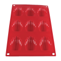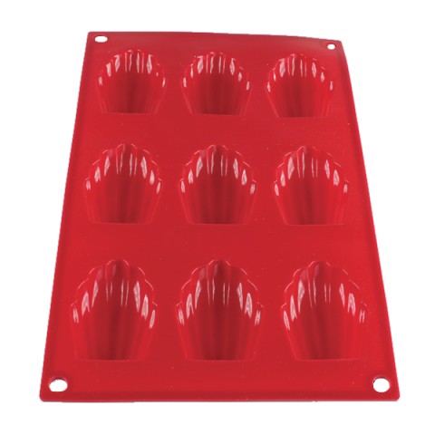 Baking Mold, 1 oz., -40° - 550°F temperature range, (9) madeleine cavities, flexible, unbreakable, non-stick, stain resistant, dishwasher safe, high heat silicone, red, FDA approved