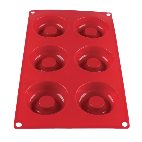 Baking Mold, 2-1/10 oz., -40° - 550°F temperature range, (6) savarin cavities, flexible, unbreakable, stain resistant, dishwasher safe, non-stick, high heat silicone, red, FDA approved