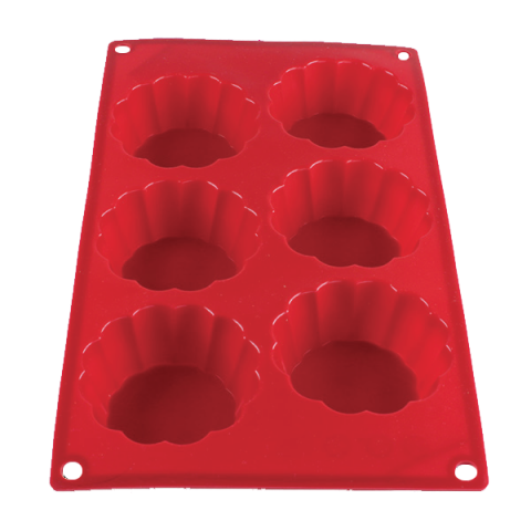 Baking Mold, 3-7/10 oz., -40° - 550°F temperature range, (6) brioche cavities, flexible, unbreakable, non-stick, stain resistant, dishwasher safe, high heat silicone, red, FDA approved