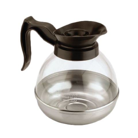 Coffee Decanter, 64 oz. capacity, durable plastic handle/top, break-resistant, polycarbonate body, stainless steel base, black