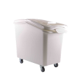 Ingredient Bin, 27 gallon, 16-1/2" x 29-1/2" x 28", holds 207 lbs. sugar or 150 lbs. flour, clear sliding lid, includes scoop with built in hook, 3" casters (2) with locking, polypropylene, white, NSF