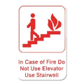 Information Symbol Sign, 6" x 9", "In Case Of Fire Do Not Use Elevator Use Stairwell", self-adhesive backing, red lettering on white background (12 each minimum order)