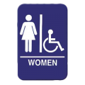 Information Symbol Sign, 6" x 9", "Women", self-adhesive backing, white lettering on blue background (12 each minimum order)