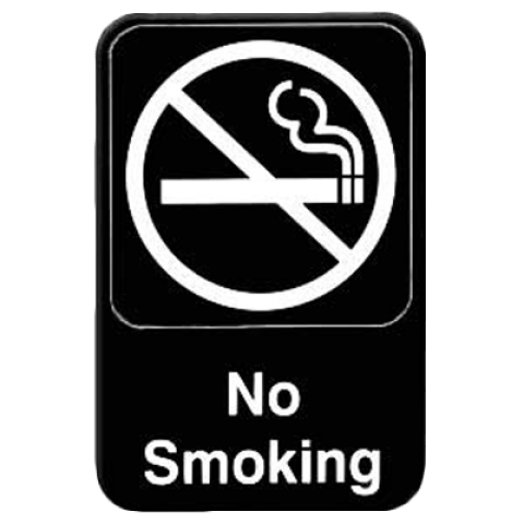 Information Symbol Sign, 6" x 9", "No Smoking", self-adhesive backing, white lettering on black background (12 each minimum order)