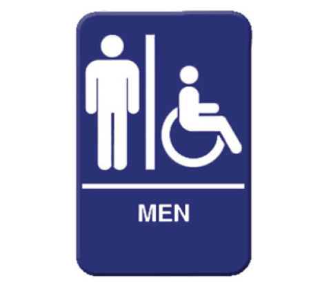 Information Symbol Sign, 6" x 9", "Men", self-adhesive backing, white lettering on blue background (12 each minimum order)