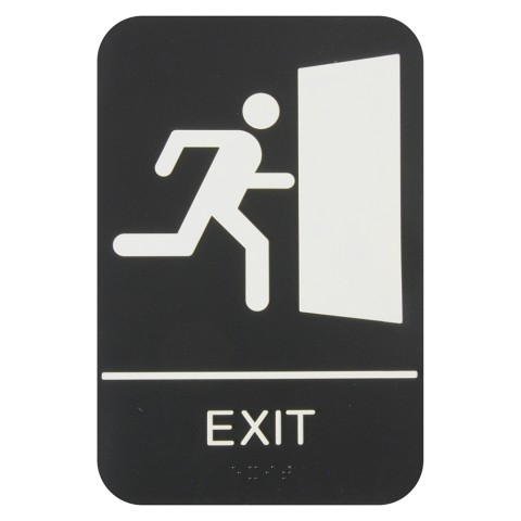 Information Symbol Sign, 6" x 9", "Exit", with braille, self adhesive backing, white lettering on black background (6 each minimum order)