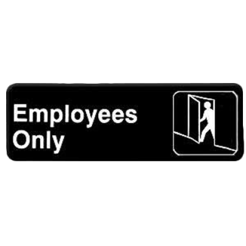 Information Symbol Sign, 9" x 3", "Employee Only", self-adhesive backing, white lettering on black background (12 each minimum order)