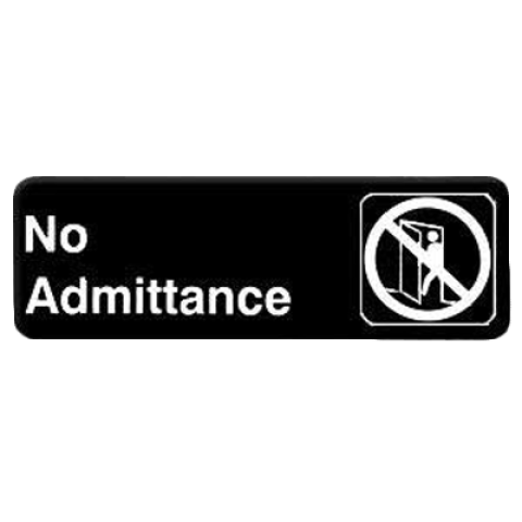 Information Symbol Sign, 9" x 3", "No Admittance", self-adhesive backing, white lettering on black background (12 each minimum order)