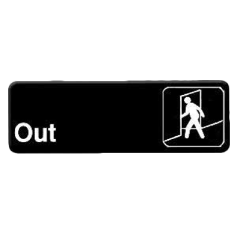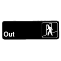 Information Symbol Sign, 9" x 3", "Out", self-adhesive backing, white lettering on black background (12 each minimum order)