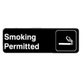 Information Symbol Sign, 9" x 3", "Smoking Permitted", self-adhesive backing, white lettering on black background (12 each minimum order)