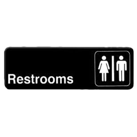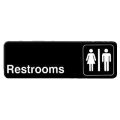 Information Symbol Sign, 9" x 3", "Restrooms", self-adhesive backing, white lettering on black background (12 each minimum order)