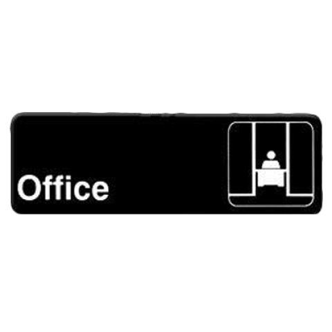 Information Symbol Sign, 9" x 3", "Office", self-adhesive backing, white lettering on black background (12 each minimum order)