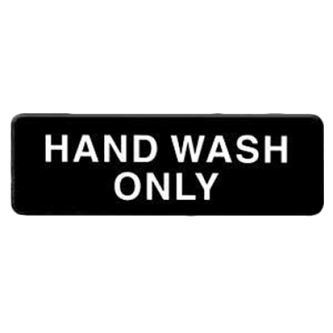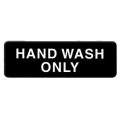 Information Symbol Sign, 9" x 3", "Hand Wash Only", self-adhesive backing, white lettering on black background (12 each minimum order)