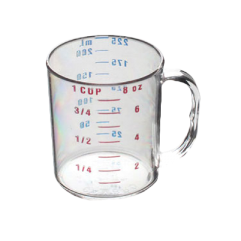 Measuring Cup, 1 cup (0.25 liter) capacity, printed with US/metric measurements, dishwasher safe, polycarbonate, NSF (12 each minimum order)