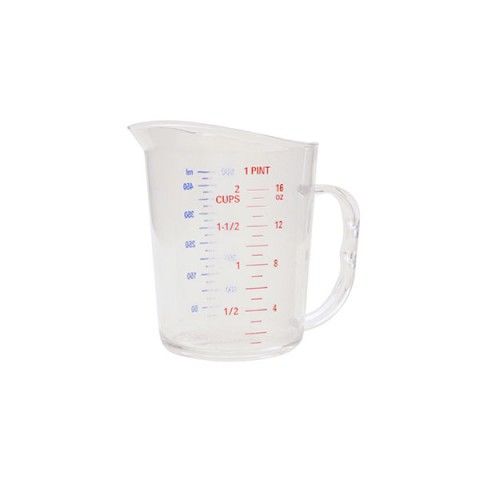 Measuring Cup, 1 pint (0.5 liter), 5-3/16"L x 4-3/16"W x 5"H, with handle, polycarbonate, clear (12 each minimum order)