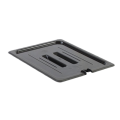 Food Pan Cover, 1/2 size, slotted, built-in handle, shatter and scratch resistant, dishwasher safe, polycarbonate, black, NSF (12 each minimum order)