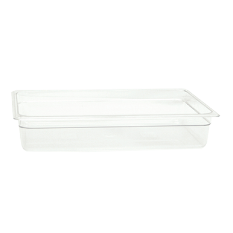 Food Pan, full size, 4" deep, shatter and scratch resistant, dishwasher safe, polycarbonate, clear, NSF (6 each minimum order)