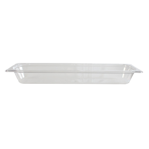 Food Pan, 1/2 size long, 2-1/2" deep, shatter and scratch resistant, dishwasher safe, polycarbonate, clear, NSF (6 each minimum order)