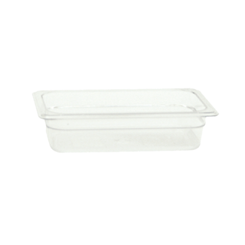 Food Pan, 1/4 size, 2-1/2" deep, shatter and scratch resistant, dishwasher safe, polycarbonate, clear, NSF (6 each minimum order)