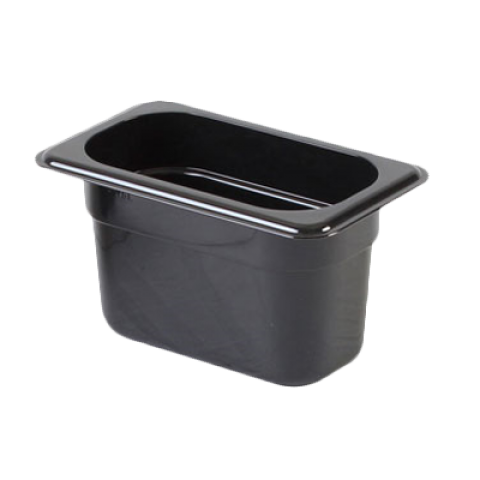 Food Pan, 1/9 size, 4" deep, shatter and scratch resistant, dishwasher safe, polycarbonate, black, NSF (12 each minimum order)