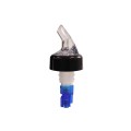 Liquor Pourer, 7/8 oz., with black collar, fits standard 750ml bottle, SAN (plastic), clear spout, blue tail (12 each per pack)